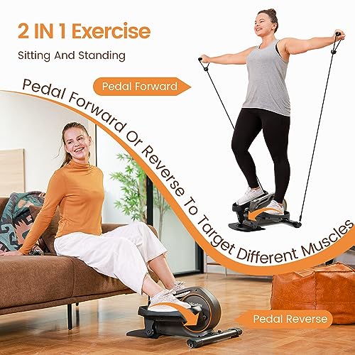 【Seated and Stand Elliptical】This compact and lightweight 2in1 mini elliptical can be used while sitting or standing. Pedal in forward or in reverse to target different muscles with low-attention leg exercise movements that can help improve circulation. With Resistance Bands, allow you to work on your arms, back, shoulders, and chest.