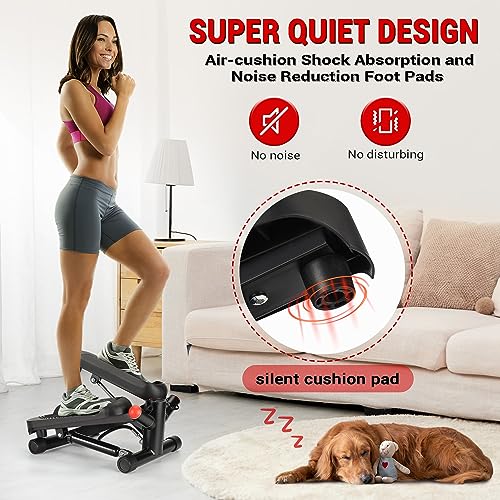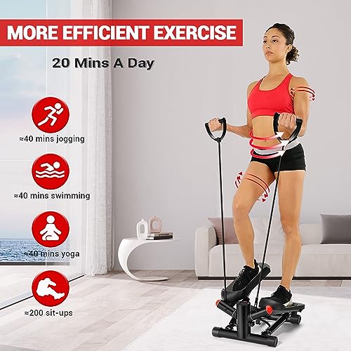 ACFITI Mini Steppers for Exercise, Stair Steppers Machine with Super Quiet Design, Hydraulic Fitness Stepper with Resistance Bands,Twist Steppers with 330LBS Loading Capacity