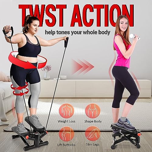 TWIST STEPPER WITH RESISTANCE BANDS: Compared with other steppers in the market, our mini stepper can allow you to twist the waist at the same time, making your whole body movement larger. Perfect for weight-loss, body-shape,and daily exercise. This resistance band can be removed at any time.