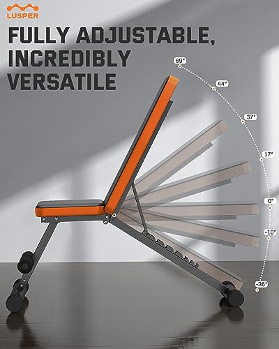 Lusper Weight Bench for Home Gym, Adjustable and Foldable Weight bench, Multi-purpose Workout Bench, Bench Press Sit up Incline Flat Decline all in 1, Stable Gym Bench for Full Body Exercise