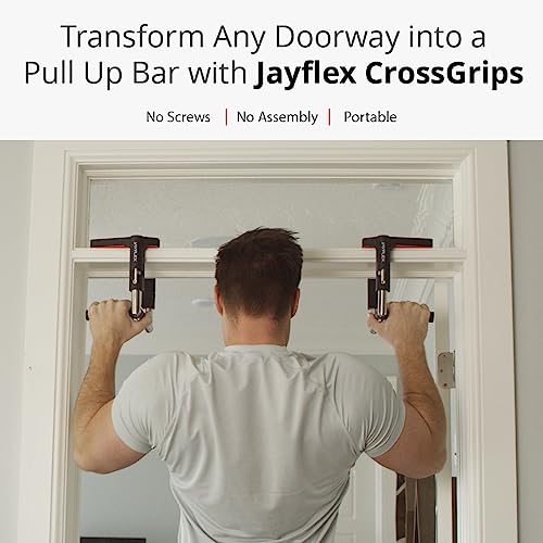 PORTABLE DOORWAY GYM: Work from home fitness has never been easier with Jayflex CrossGrips – portable pull up bar handles. Transform any doorway into an at-home pull up bar with these door frame pull-up bar.