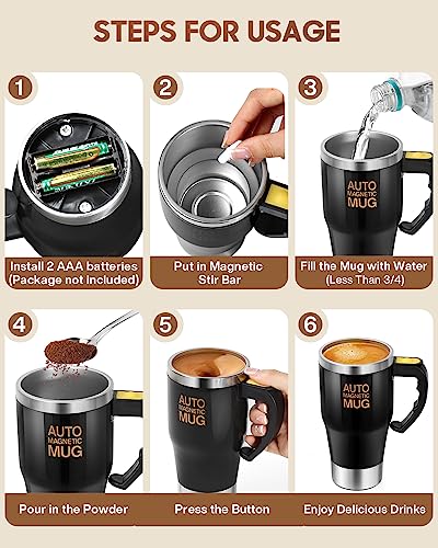 ★ MATERIAL & EASY TO CLEAN — The Magnetic Stirring Cup is made of food-grade ABS and food-grade 304 stainless steel. Our stirring mug has a maximum capacity of 420ml/14.2oz. The double-layer design of the cup body will not burn your hands when the boiling water is poured into the cup.it is easy to clean it with running water, but do not use the dishwasher or completely soak for cleaning.