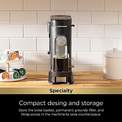 Ninja PB051 Pods & Grounds Specialty Single-Serve Coffee Maker, K-Cup Pod Compatible, Built-In Milk Frother, 6-oz. Cup to 24-oz. Travel Mug Sizes, Black